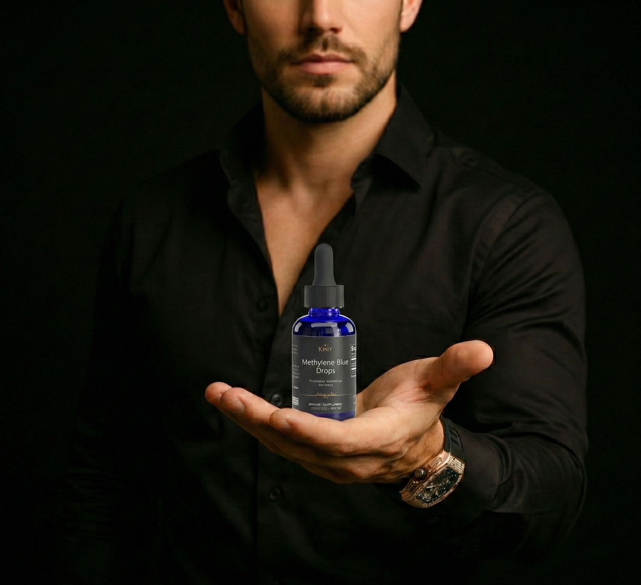 Experience the power of cellular optimization with Kiniy. Each drop delivers a potent dose of Methylene Blue to support mitochondrial function, sharpen focus, and combat mental fatigue.